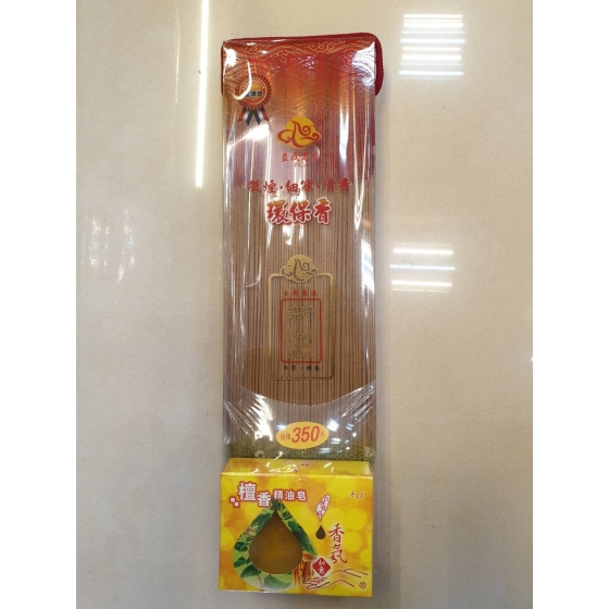 【環保香】精選新山頭粉而製,微煙細條清香,現在買即贈送檀香精油皂一塊,物超所值,是禮佛拜拜最佳選擇